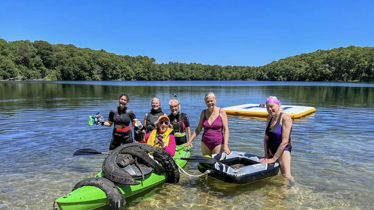 Old Ladies Against Underwater Garbage was formed in 2017, and they have been cleaning up ponds on Cape Cod from Falmouth to Chatham ever since. Gathering small teams of swimmers, they sweep along the shallows, diving down to pick up litter. They have appeared on ABC, NBC, CBS, AARP, Yankee TV Series and the Drew Barrymore show.
