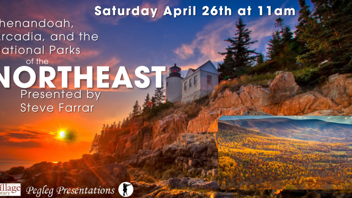 Steve Farrar delivers an exciting monthly presentation of the US National Parks at the Osterville Village Library! For the month of April we will take a look at the stunning beauty of the Shenandoah, Arcadia, and the National Parks of the Northeast!